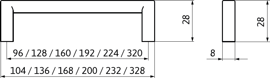 FORMAT Möbelgriff Larissa BA=160mm B=8mm L=168mm Zamak edelstahloptik