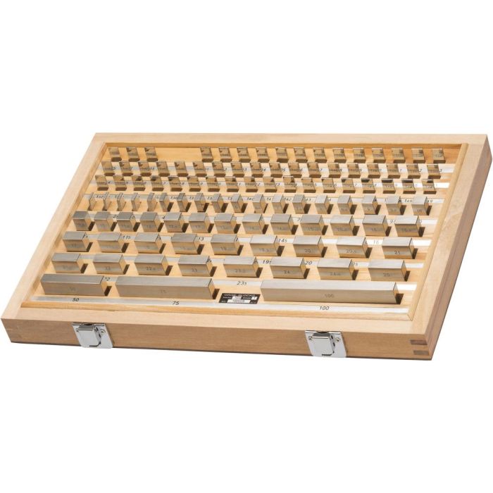 • DIN EN ISO 3650 (ehemals DIN 861) • Aus speziell legiertem und entspanntem Stahl • Sehr stabil und äußerst verschleißfest • Jedes Endmaß ist mit einer individuellen Identifizierungsnummer gekennzeichnet Hinweis: Nicht Vorkalibriert.