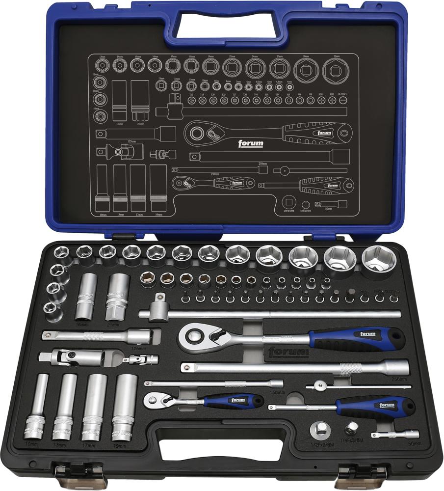 FORUM Steckschlüssel-Garnitur Kombiniert 1/4" und 1/2" 61-teilig