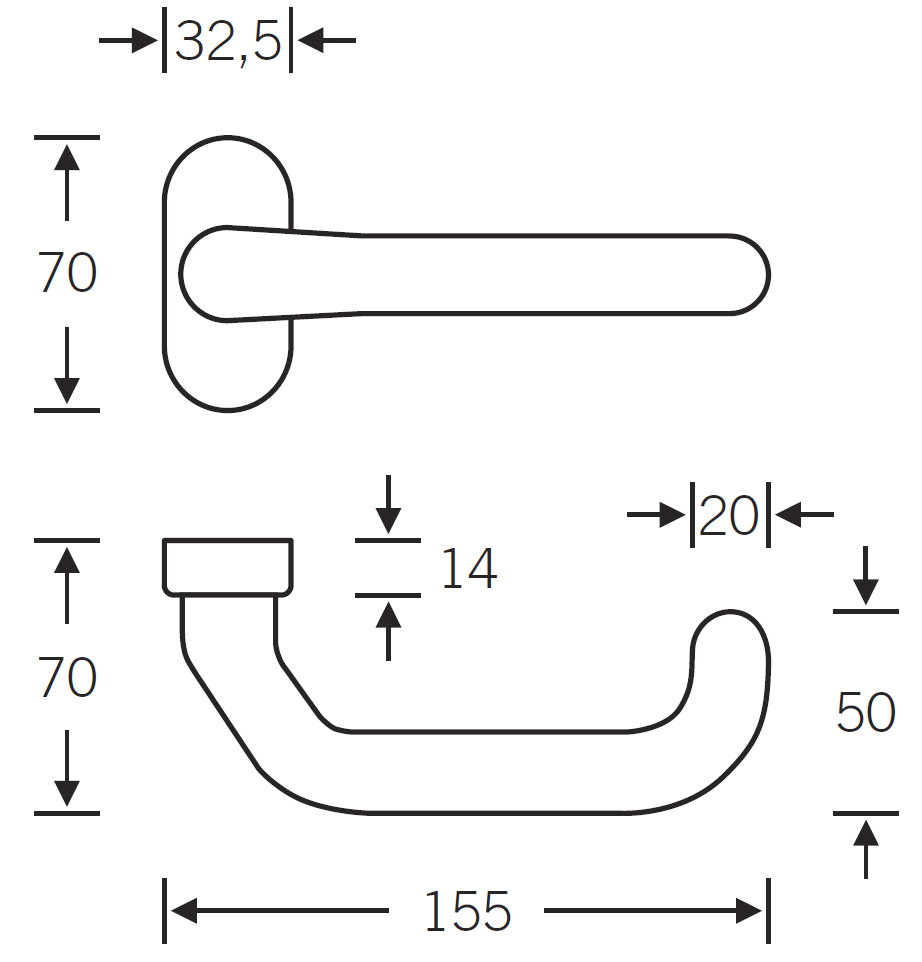 • Türdrücker für Rahmentüren auf ovaler Rosette