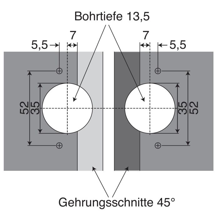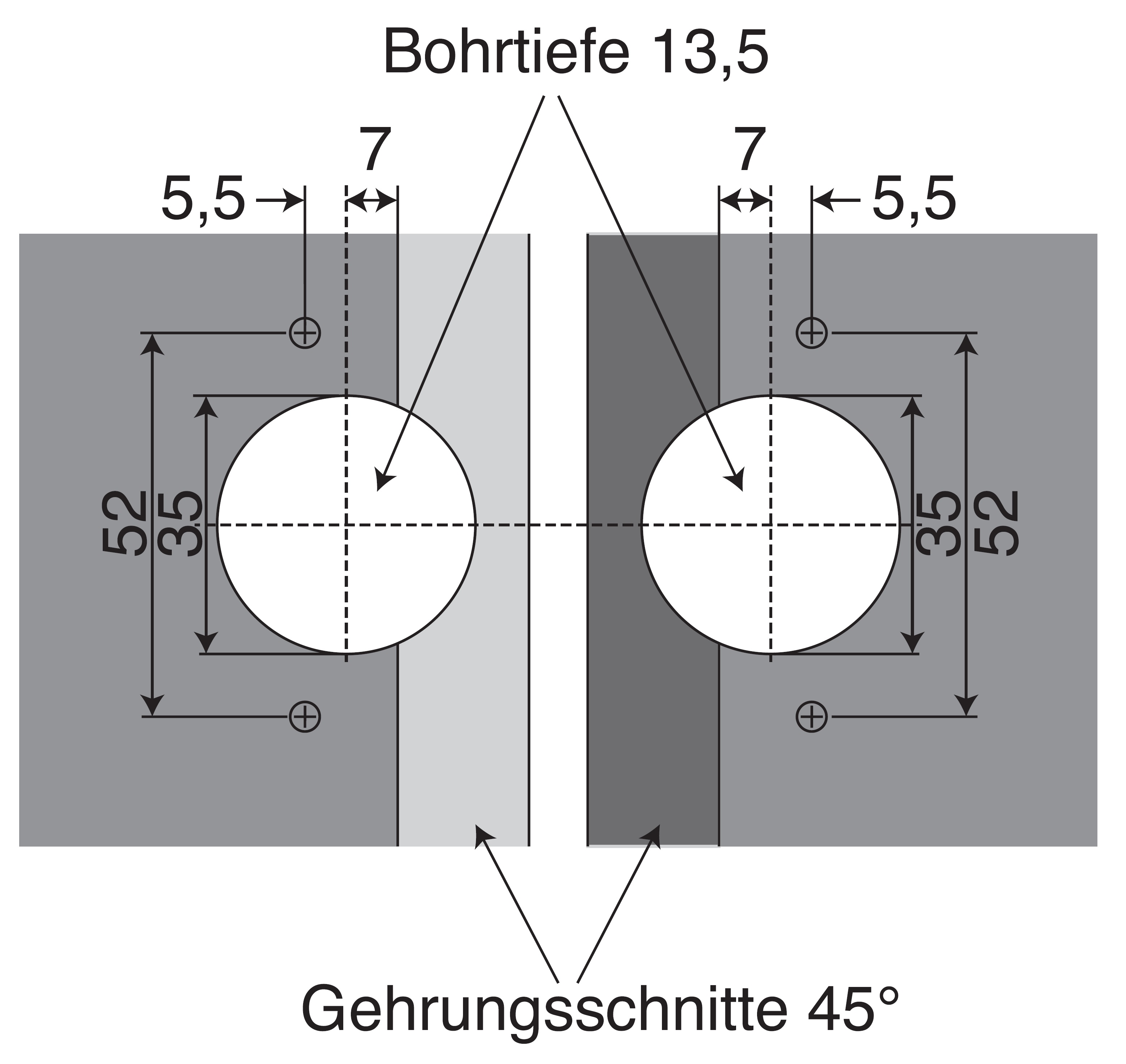• Für die Topfbefestigung können 5 mm Euroschrauben verwendet werden