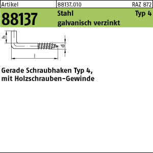 Artikel 88137 Stahl Typ 4 galvanisch verzinkt Gerade Schraubhaken Typ 4, mit Holzschrauben-Gewinde