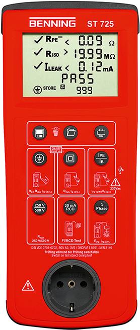 • Batteriebetriebener Gerätetester, einfach (Bedienung über drei Tasten), schnell (komplette Prüfung innerhalb von 10 Sek.), mobil (Prüfung netzunabhängig durchführbar)
