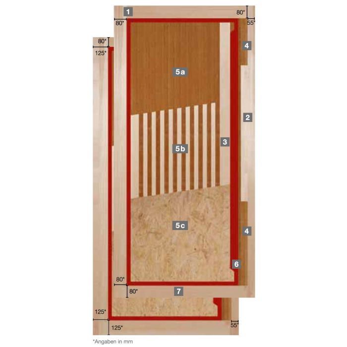 • 5. a. Mittellagen aus umweltfreundlichen Holzfaserdämmplatten, Natureplus und FSC-Zertifiziert.