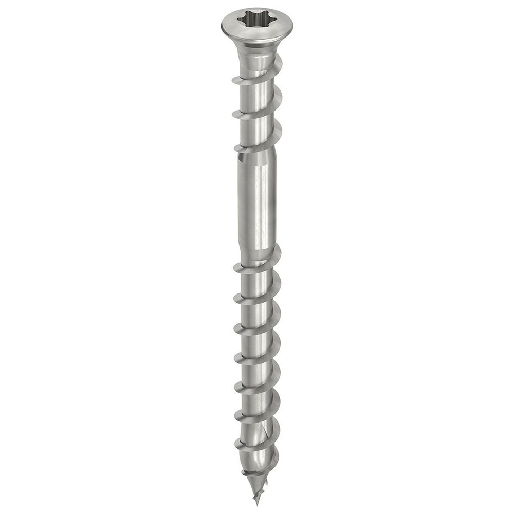 Die HECO-TOPIX-plus Terrassenbelagschraube aus Edelstahl wurde speziell auf die Anforderungen von Terrassenmontagen angepasst. Die gleitbeschichtete Schraube lässt sich leicht verarbeiten und dank des kleinen Kopfes problemlos versenken. Auch die Optik kommt nicht zu kurz – die Edelstahl-Oberfläche kann sich sehen lassen und passt optimal zu ästhetisch ansprechenden Holzkonstruktionen.