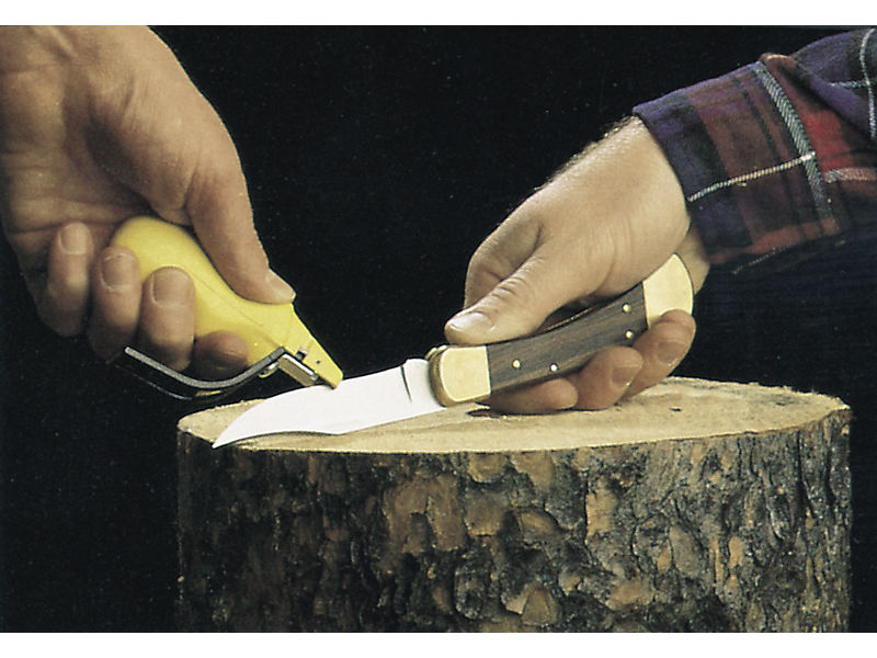 Herbertz Messerschärfer. Mit diesem Werkzeug erreicht man durch den optimalen Schleifwinkel immer ein scharfes Messer. Der Schärfer besitzt einen Schutzbügel, der Verletzungen verhindert.