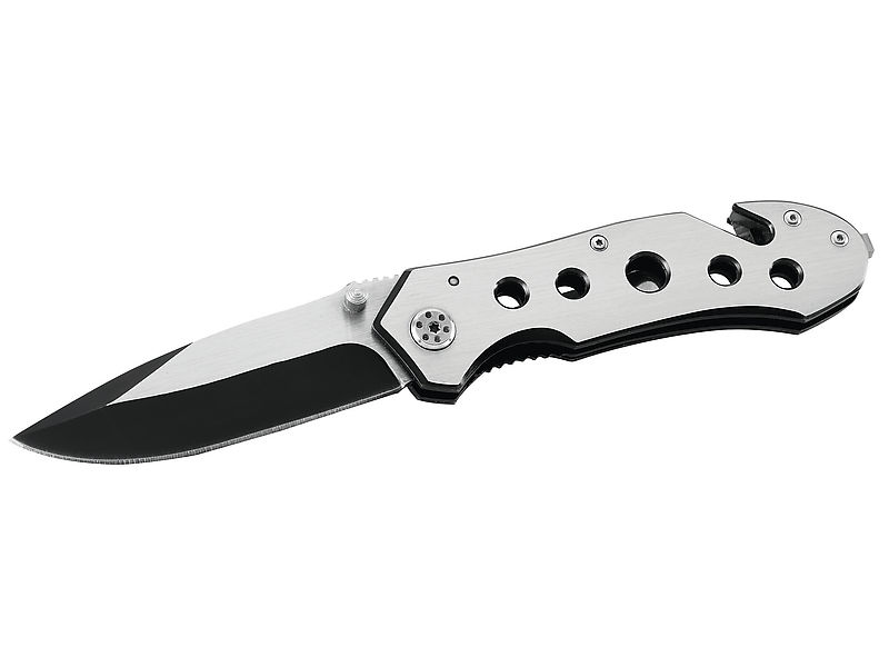 Das Herbertz Rettungsmesser ist mit einem robusten Heft aus Edelstahl ausgestattet. Die Klinge ist teilweise schwarz beschichtet und besteht aus dem rostfreien Stahl AISI 420. Das Messer ist durch die beidseitigen Daumenknöpfe jederzeit einsatzbereit. Die Öffnungen im Heft sorgen für die notwendige Gewichtsreduzierung. Gurtschneider und ein Schlagdorn zum Zertrümmern von Scheiben komplettieren den Leistungsumfang. Der sichere Gebrauch ist durch die Liner-Lock Arretierung gewährleistet.