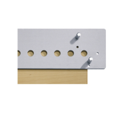 • Erste Lochreihenbohrung für Verbindungsbeschläge (für 16 mm und 19 mm Bodenstärke)