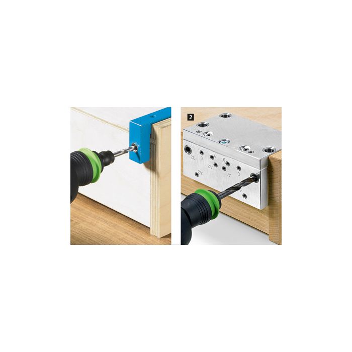 • Zum Einbringen der Bohrung für den C-Haken bei Quadro Führungen für Holzschubkästen