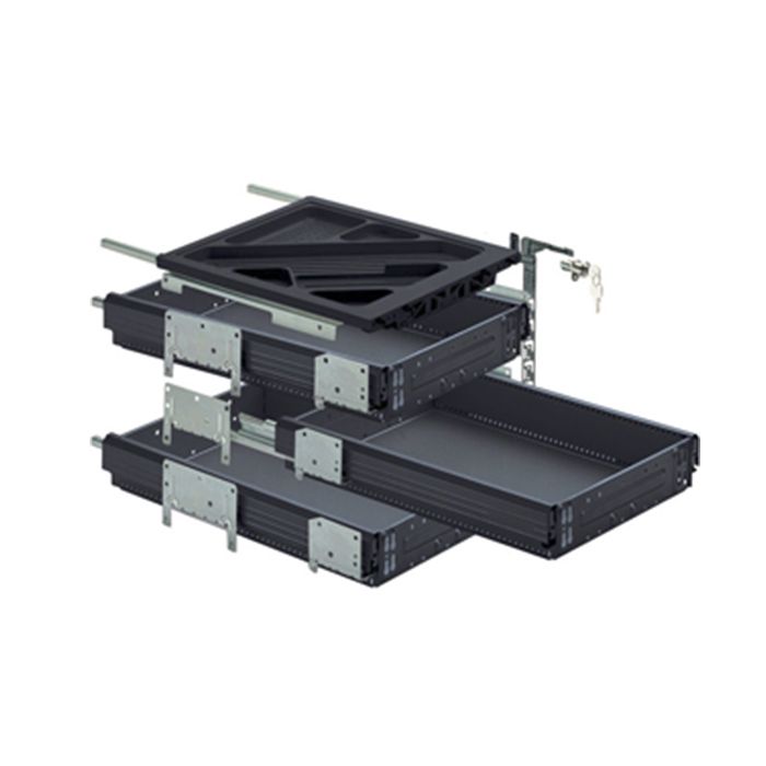 • 2,5 HE: Stahlschubkasten, Auszugsführung Quadro Duplex 25, Vollauszug