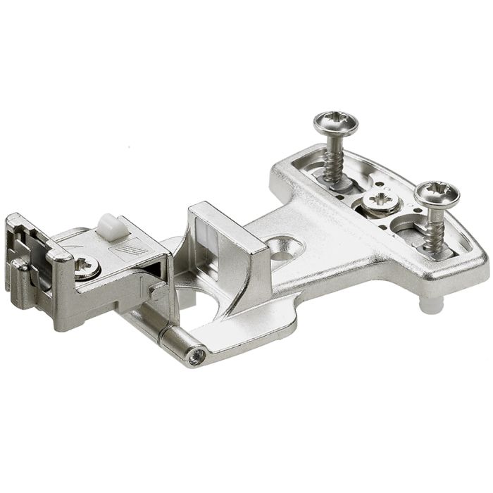 • Grundscharnier mit Spreizmuffen und vormontierten Linsenkopf-Schrauben