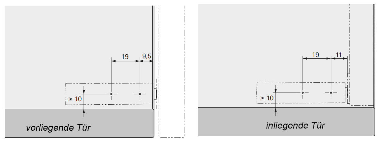 • Für voll vorliegende, halb vorliegende und einliegende Türen