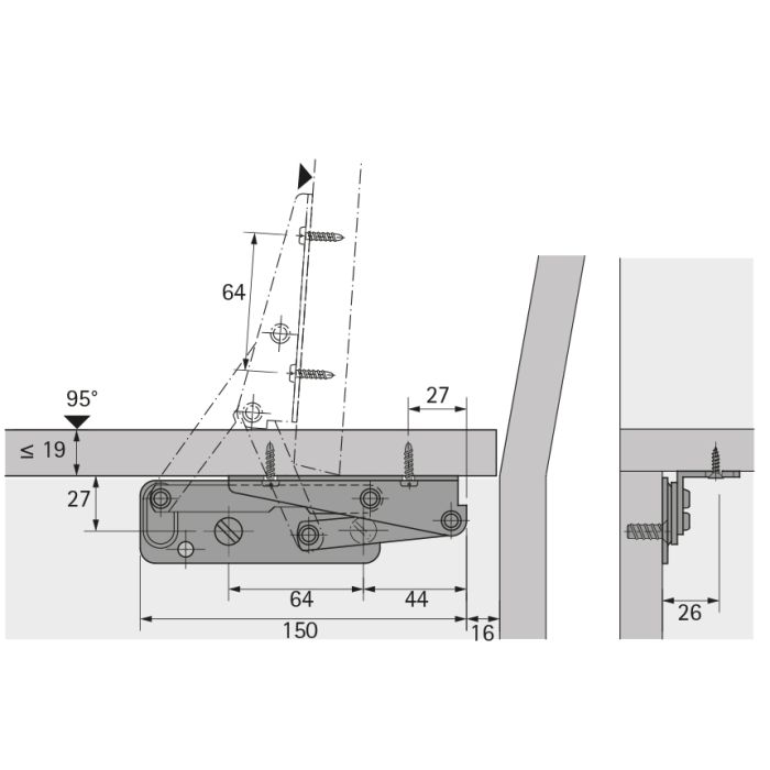 • Schlüssellöcher im Anschlagwinkel erleichtern das Einhängen und Ausrichten der Klappe bei der Montage