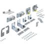 Set besteht aus Lauf- und Führungsteilen sowie Befestigungsmaterial für 2- bzw. 3-türige Schiebetürschränke