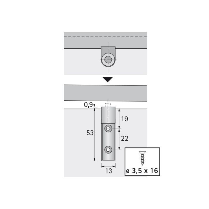 • Passend zu Intermat und SlideOn Scharnieren • Zum Anschrauben am Korpusoberboden oder -unterboden • Ab Frontgewicht 7,5 kg zwei Dämpfer verwenden • Nachrüstbar