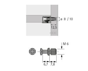 • Beim Unterboden kann der Exzenter auch von oben verspannt werden. Dazu ist im Boden eine Durchgangsbohrung erforderlich