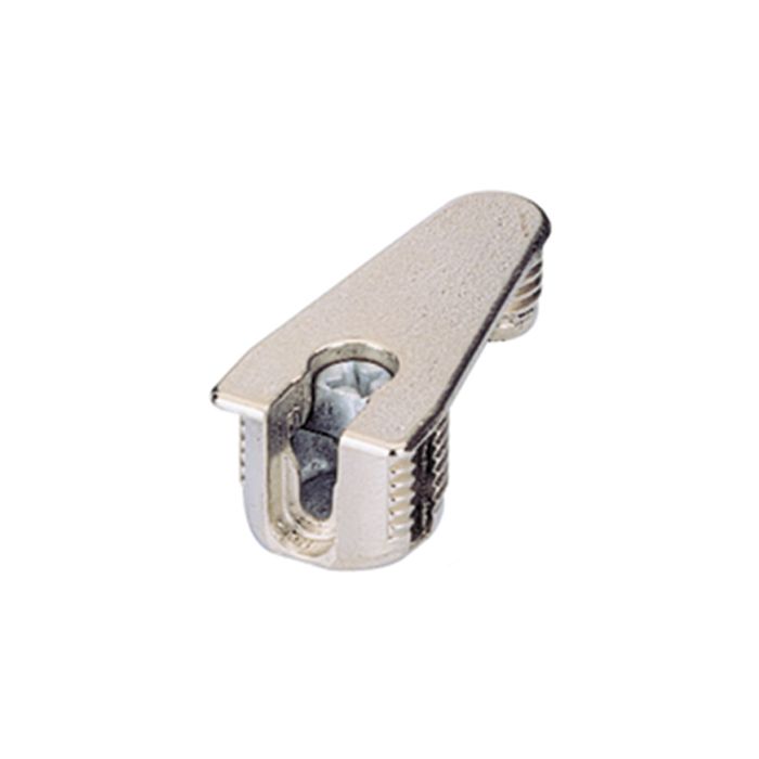 • Zierliche Verbindungsbeschläge für form- und kraftschlüssige Verbindungen von Fachböden mit Seitenwänden nach bewährtem Exzenter-Rastprinzip