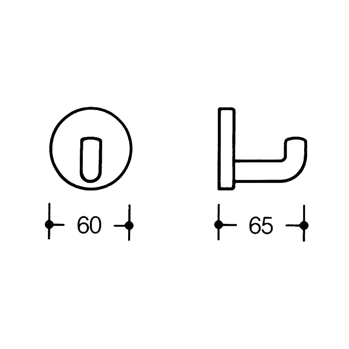 • rechtwinklig gebogener, zylindrischer Haken mit Befestigungsrosette