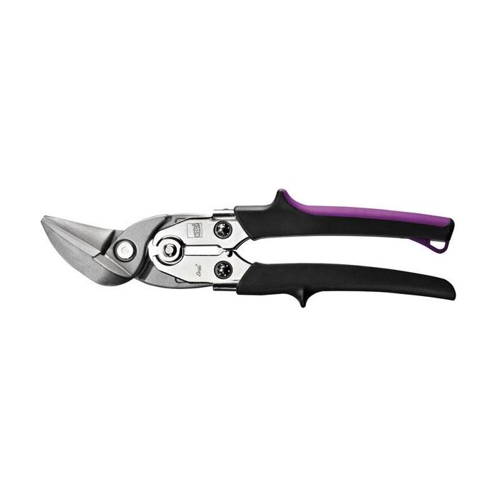 • Edelstahl • Schneiden aus HSS-Stahl und induktiv gehärtet (65 HRC) • Griffe mit ergonomisch geformten Mehrkomponenten-Kunststoffhüllen • Gesenkgeschmiedet und vergütet • Abgleitschutz und Aufhängeöse • Für gerade und durchlaufende Schnitte sowie Figurenschnitte mit kleinen Radien Schneidleistung: Blech und Edelstahlblech bis 1,2 mm.