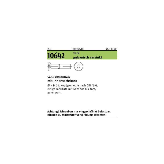 ISO 10642 010.9 galvanisch verzinkt Senkschrauben mit Innensechskant