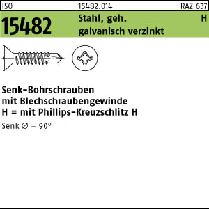 ISO 15482 Stahl, geh. H galvanisch verzinkt Senk-Bohrschrauben mit Blechschraubengew., Phillips-KS H