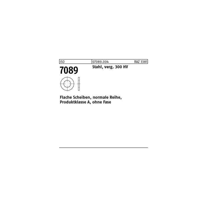 ISO 7089 Stahl, verg. 300 HV Flache Scheiben, normale Reihe, Produktklasse A, ohne Fase