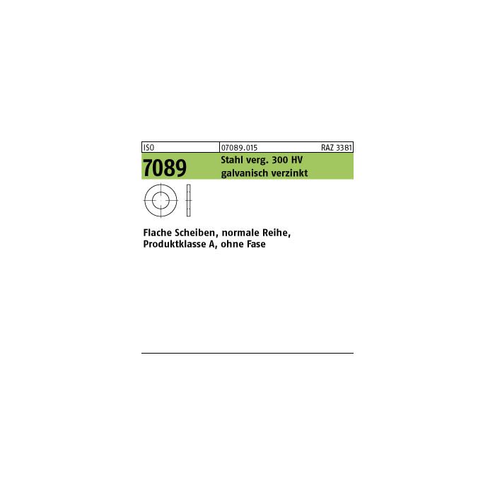 ISO 7089 Stahl verg. 300 HV galvanisch verzinkt Flache Scheiben, normale Reihe, Produktklasse A, ohne Fase