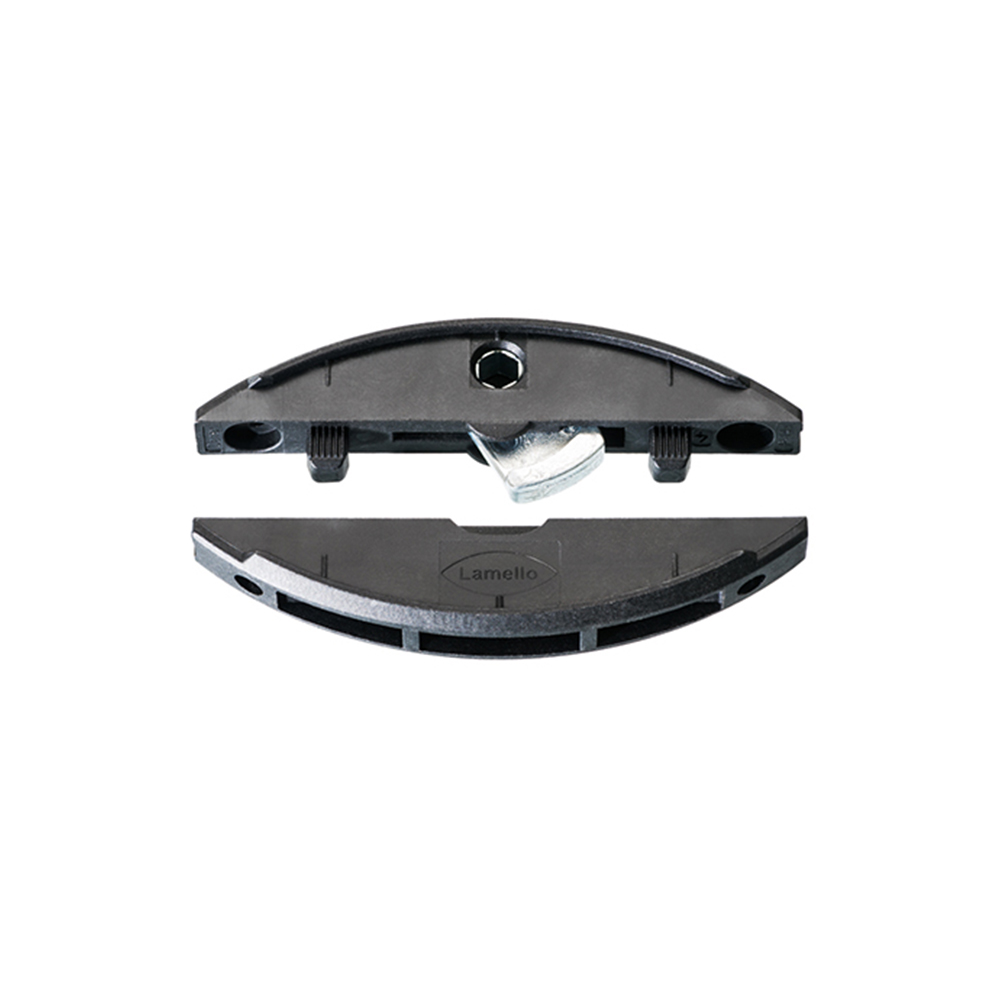 Clamex P-14 ist ein wiederlösbarer Verbinder und wird mit der formschlüssigen P-System Nut sekundenschnell im Werkstück verankert. Durch die minimalistische 6 mm Bedienungsöffnung wird Clamex P-14 über einen Hebel kraftvoll verbunden und wieder gelöst. Clamex P-14 verzichtet auf Klebstoff, ermöglicht ästhetische Verbindungen in allen Winkeln und ist ideal für feste oder zerlegbare Gehrungsverbindungen. Clamex P-14 wird in Gehrungen ab 18 mm Plattenstärke oder in stumpfen Verbindungen ab 15 mm eingesetzt.