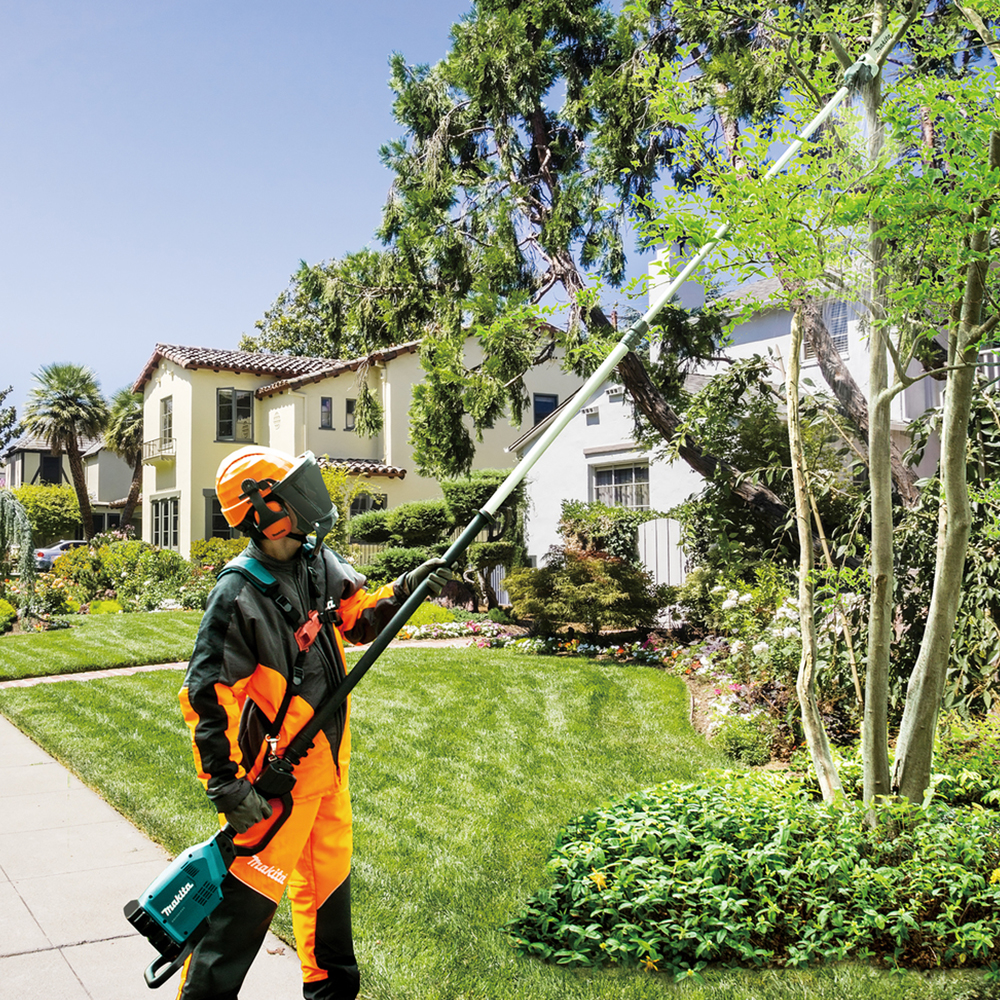 Mit dem leistungsstarken Akku-Hochentaster lassen sich Bäume und Sträucher in großer Höhe problemlos vom Boden aus beschneiden. Der