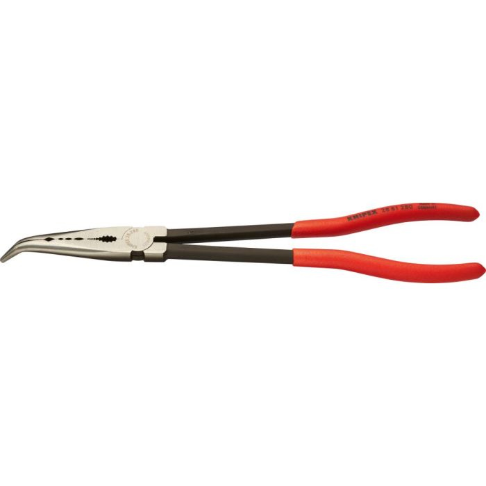 • Kopf poliert • Griffe mit Kunststoff überzogen • Spezial-Werkzeugstahl • DIN ISO 5743 • Flach-runde Backen • Greifflächen mit Querprofilen • Für Greif-, Justier- und Montagearbeiten an schwer zugänglichen Stellen