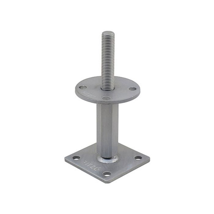 Ein System für jeden Einsatzbereich! Gewindestärken von M20 bis M30 und verschiedenste Plattengrößen in Materialstärken von 6 bis 15 mm bieten für jeden Anwendungsfall die perfekte Lösung. Abhub und seitliche Einwirkungen können mittels einer geraden Verschraubung ins Hirnholz mit Holzschrauben Vollgewinde 10 x 120 mm (europäisch technisch zugelassen) oder einem Schwert bzw. Seitenlaschen gesichert werden. Selbstverständlich sind Pfostenträger vom System Rechts/Links Gewinde im fertig eingebauten Zustand auch unter hohen Lasteinwirkungen problemlos höhenverstellbar. Durch die Verwendung von zusätzlichen Kontermuttern ist eine hohe Steifigkeit möglich.