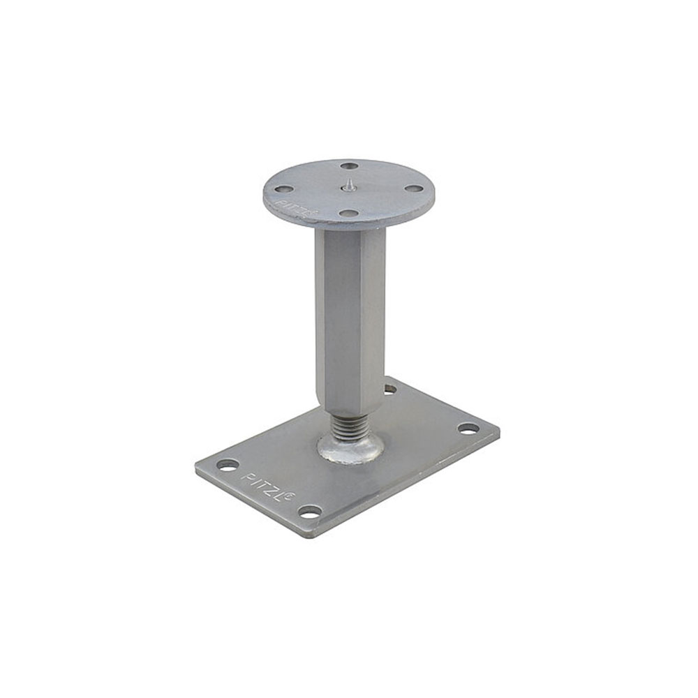 Ein System für jeden Einsatzbereich! Gewindestärken von M20 bis M30 und verschiedenste Plattengrößen in Materialstärken von 6 bis 15 mm bieten für jeden Anwendungsfall die perfekte Lösung. Abhub und seitliche Einwirkungen können mittels einer geraden Verschraubung ins Hirnholz mit Holzschrauben Vollgewinde 10 x 120 mm (europäisch technisch zugelassen) oder einem Schwert bzw. Seitenlaschen gesichert werden. Selbstverständlich sind Pfostenträger vom System Rechts/Links Gewinde im fertig eingebauten Zustand auch unter hohen Lasteinwirkungen problemlos höhenverstellbar. Durch die Verwendung von zusätzlichen Kontermuttern ist eine hohe Steifigkeit möglich.