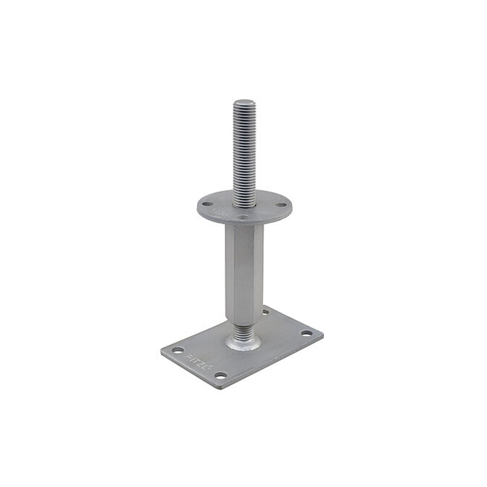 Ein System für jeden Einsatzbereich! Gewindestärken von M20 bis M30 und verschiedenste Plattengrößen in Materialstärken von 6 bis 15 mm bieten für jeden Anwendungsfall die perfekte Lösung. Abhub und seitliche Einwirkungen können mittels einer geraden Verschraubung ins Hirnholz mit Holzschrauben Vollgewinde 10 x 120 mm (europäisch technisch zugelassen) oder einem Schwert bzw. Seitenlaschen gesichert werden. Selbstverständlich sind Pfostenträger vom System Rechts/Links Gewinde im fertig eingebauten Zustand auch unter hohen Lasteinwirkungen problemlos höhenverstellbar. Durch die Verwendung von zusätzlichen Kontermuttern ist eine hohe Steifigkeit möglich.