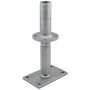 Um die Montage weiter zu vereinfachen, haben wir die Artikelreihe 10930 entwickelt. Die Oberteile haben einen Rohrdurchmesser von 42,4 mm, diese werden einfach in den Holzpfosten eingesteckt und mit 4 Holzschrauben Ø 10 x 120 mm Vollgewinde befestigt. Dadurch sparen Sie wertvolle Montagezeit und erreichen gleichzeitig die gewohnten Werte für Druck-, Zug- und Querkräfte. Für die erforderliche Bohrung der Stütze können Sie wie bisher unseren Holzspiralbohrer oder ihre Abbundanlage verwenden. Das patentierte Oberteil ermöglicht den Pfostenträgern der Serie 10930 / 10931 einen außergewöhnlich großen Verstellbereich. Natürlich kann das Oberteil auch als Säulen-Pfetten-Verbindung verwendet werden. Der vielseitig kombinierbare Stützenfuß ist auch im eingebauten Zustand und unter hoher Lasteinwirkung höhenverstellbar. Durch die Verwendung von zusätzlichen Kontermuttern ist eine hohe Steifigkeit möglich.