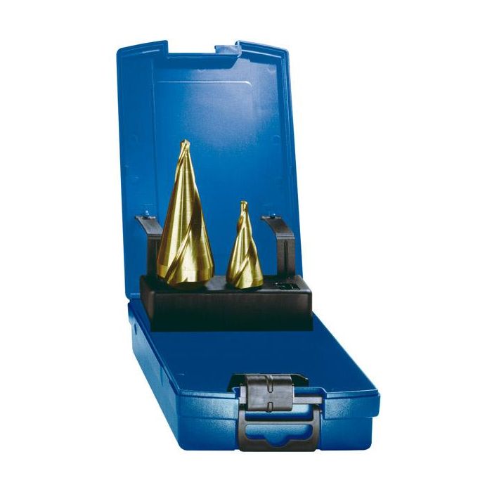 • Werksnorm • HSS • Lasersignierung der Loch-Ø und Drehzahlen • Spiralgenutet • Durchrutschen im Bohrfutter wird durch 3-Flächenschaft verhindert • Kreuzanschliff Lieferung: In Kunststoffkassette mit automatischer Aufrichtfunktion der Bohrer beim Öffnen. Hinweis: Zur Erhöhung der Standzeiten empfehlen wir den Einsatz der Bohrpaste (Bestell-Nr.: 42 12004 200).