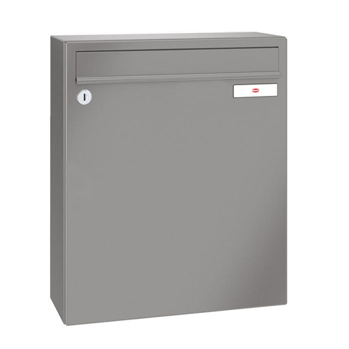 • Tür und Gehäuse aus korrosionsgeschütztem und pulverbeschichtetem Stahl, mit Einwurfklappe aus pulverbeschichtetem Aluminium