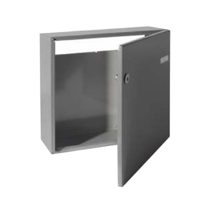 • Rückseitige Tür mit Zylinderschloss inkl. zwei Schlüssel und Kunststoff-Namensschild