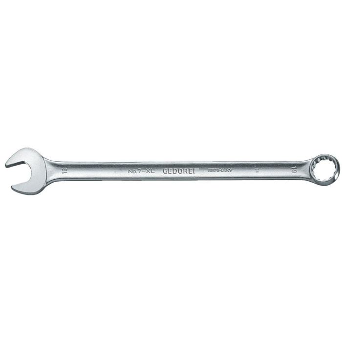 • Matt verchromt • GEDORE Vanadium Stahl 31CrV3 • Geschmiedet • Maul- und Ringstellung 15° abgewinkelt • Ähnlich DIN 3113, ISO 3318 • Extralanger Schaft für tiefen Einsatzbereich