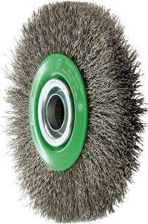 • Bohrung 20 mm, ab Bürsten-Ø 150 mm Bohrung 31,75 mm • Universelle Bürste für alle mittelschweren Bürstarbeiten • Zum Aufrauen, Entgraten, Entlacken, Entzundern, Mattieren und Reinigen