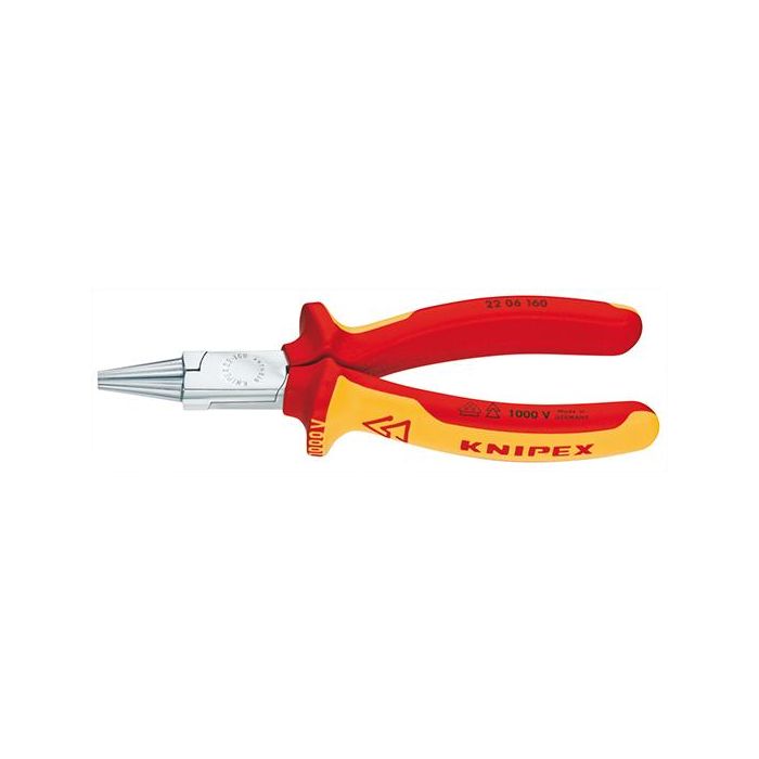 Rundzange VDE, Kopf verchromt, Griffe mit Mehrkomponenten-Kunststoffhüllen