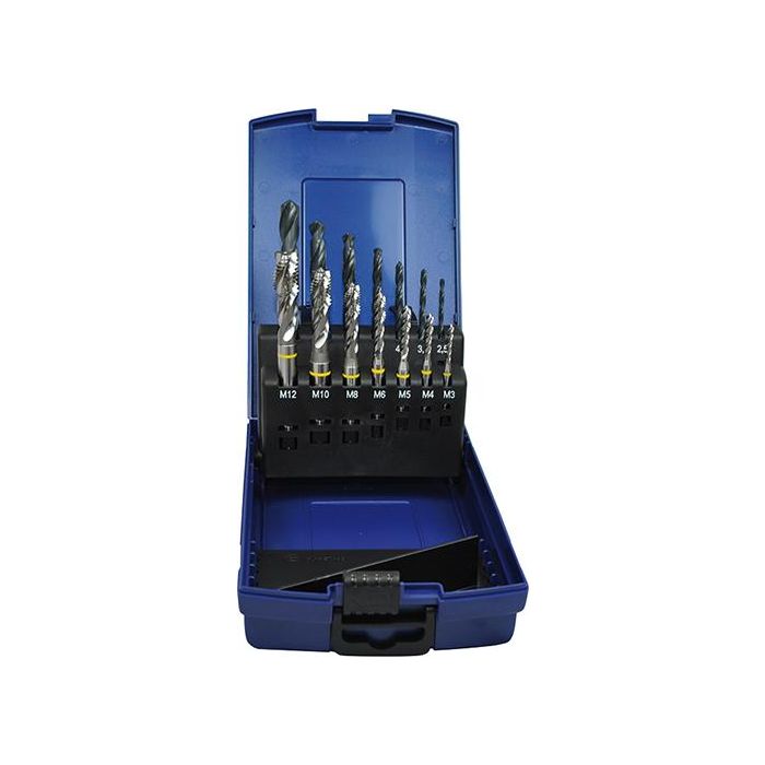 • Metrisches ISO-Gewinde DIN 13 • Form C (2–3 Gang) • Rechtsspirale 40° • Toleranz ISO 2 6H • Gewindebohrer nach DIN 371 (M3–M10) mit verstärktem Schaft bzw. DIN 376 mit Überlaufschaft • 2 x D Sackloch Lieferung: In Kunststoffkassette.