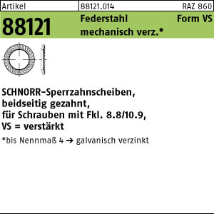 Artikel 88121 Federstahl Form VS mechanisch verz. SCHNORR-Sperrzahnscheiben, beidseitig gezahnt, für Schrauben mit Fkl. 8.8/10.9