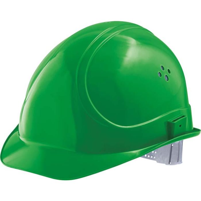 • Polyethylen (PE) • Im Nacken heruntergezogene Helmschale • Hochsaugfähiges Schweißband • Regenrinne • Seitliche Slots für Gehörschützer • Belüftungslöcher Ø 30 mm • Stark abgewinkeltes Nackenband für perfekten Sitz • Größeneinstellung von 51–64 cm • Kinnriemenhalterung • Helmschalengewicht ca. 255 g • Temperaturen bis –20 °C • EN 397