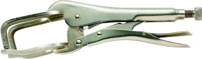 • Stark profilierte Spannbacken • Oberbacke um 90° gebogen • U-Form ermöglicht eine Sichtbarkeit während des Schweißvorganges • Einstellung der Spannweite und des Spanndruckes erfolgt mittels Einstellschraube • Zum Spannen und Festhalten von Profil- und Flachmaterial bei Schweißarbeiten