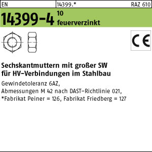 EN 14399-4 10 feuerverzinkt -P- Sechskantmuttern mit großer SW für HV-Verbindungen im Stahlbau