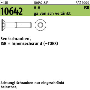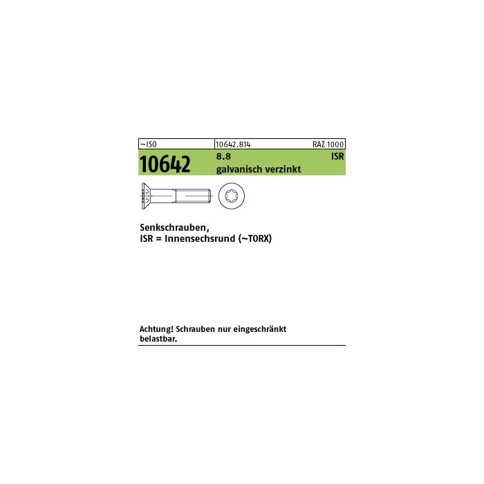 Senkschrauben m.ISR ISO 10642 08.8 M 5x12 -T galv.verz. galZn VE=500St
