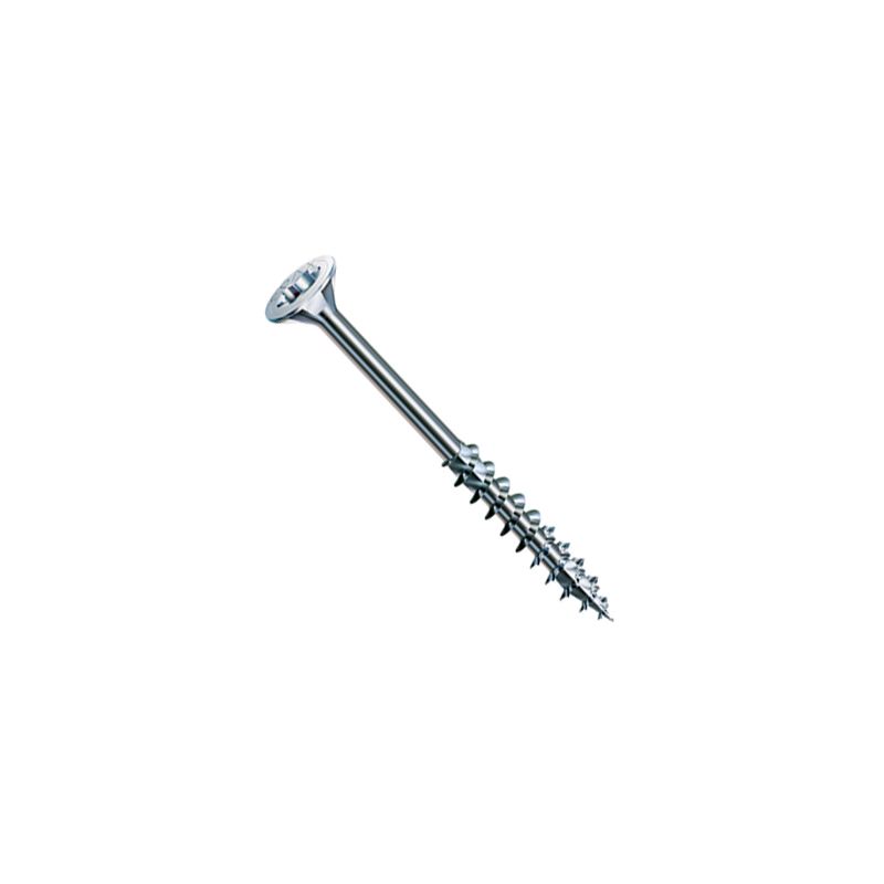 • 4CUT: Ohne Vorbohren (holzabhängig), ihre Spitze verringert wirkungsvoll die Spaltwirkung. Vierkant verdrängt die Fasern des Holzes und reduziert das Einschraubdrehmoment.