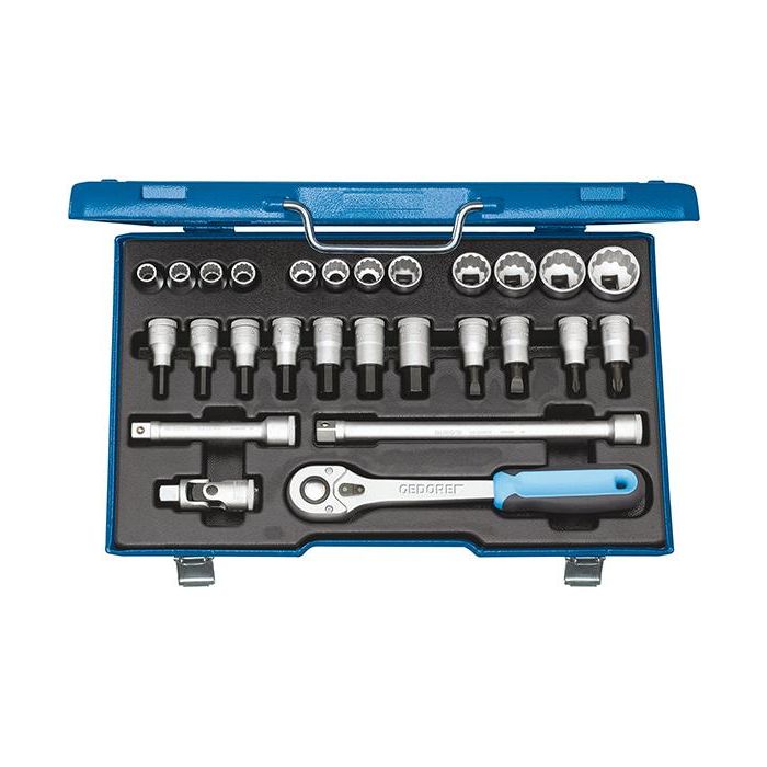 Steckschlüssel-Garnitur 1/2" Gedore 12-kant, mit Schraubendreher-Einsätzen, 27-teilig