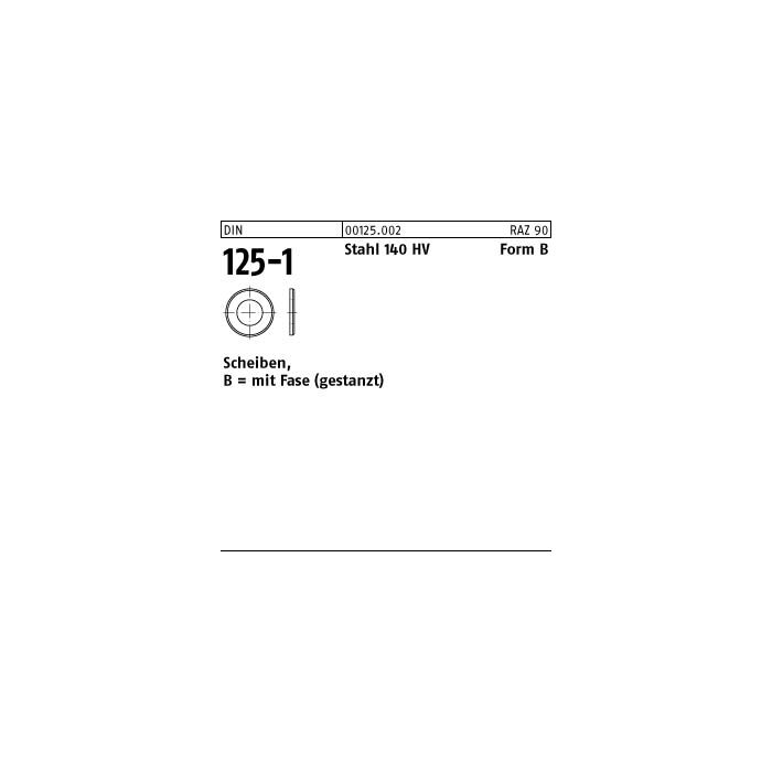 Unterlegscheibe U-Scheibe DIN 125-1 Stahl 140 HV Form B Scheiben, mit Fase (gestanzt)