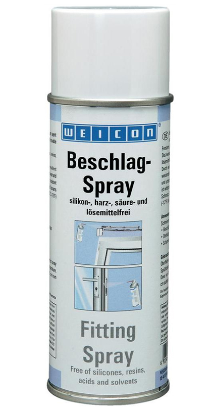 Beschlag-Spray ist ein haftstarkes Wartungs- und Pflegemittel für alle beweglichen Teile an Fenstern, Türen, Toren, etc.